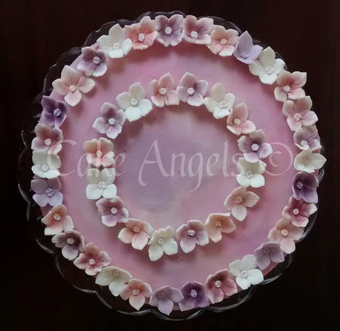 Pink and Purple Hydrangea Watercolour Cake
